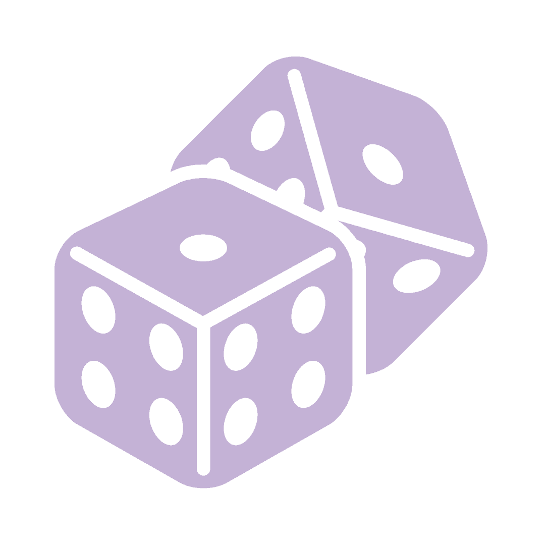 - Bold purple dice representing luck, chance, and strategic marketing.